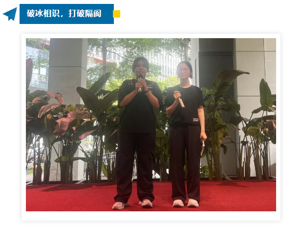 團(tuán)隊(duì)展示后各同學(xué)互相自我介紹,通過大家幽默風(fēng)趣的話語(yǔ),同學(xué)們迅速拉近距離,陌生感悄然消散。