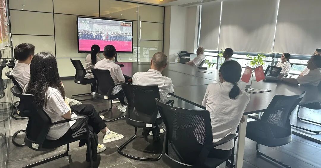 觀看過程中全體員工保持肅靜,莊嚴(yán)有序地認(rèn)真聆聽紀(jì)念大會內(nèi)容,專注觀看閱兵儀式,深刻感悟抗戰(zhàn)精神的時代價值,從歷史中汲取攻堅(jiān)克難、勇毅前行的力量。80 年前,無數(shù)先烈用鮮血鑄就民族脊梁;